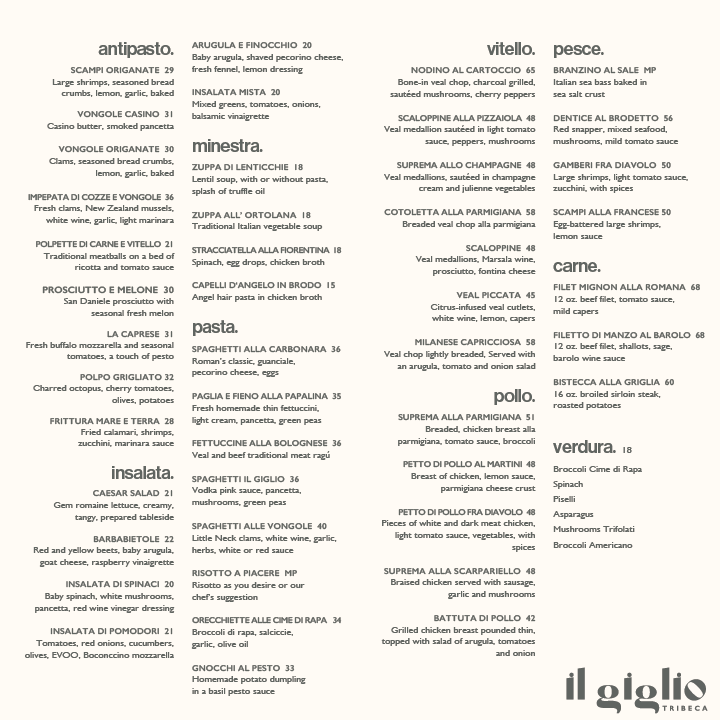 Welcome to Il Giglio Tribeca, an exquisite Italian restaurant located in the heart of Tribeca at 361 Greenwich St, New York. Here, the menu promises a transformative dining experience that encapsulates the essence of Italian cuisine.